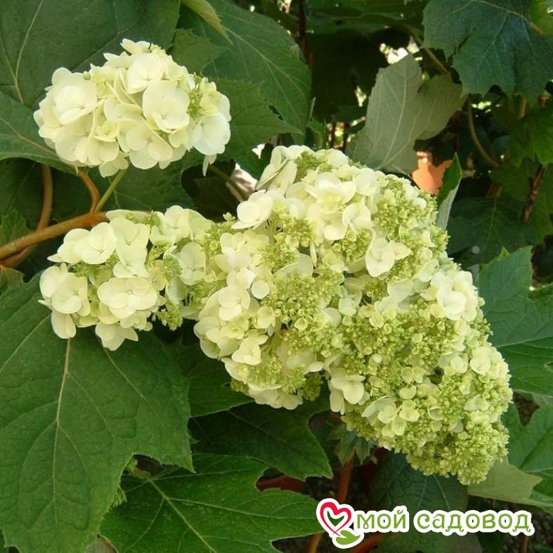 Гортензия дуболистная «Harmony» Декоративный кустарник до 2 м высотой. Побеги красновато-войлочные. Листья 3—7-лопастные, похожие на листья дуба, откуда и произошло видовое название этого растения. Основание листьев клиновидное или почти усеченное. Листья сверху темно-зеленые и голые, снизу бело-войлочно опушенные, до 20 см длиной. Осенью листья окрашиваются в ярко-красные, оранжевые или бордовые цвета. Соцветия крупные, конические, до 30 см длиной! с многочисленными ослепительно белыми стерильными цветками, величина последних не превышает 2—3 см. По мере отцветания они розовеют. Цветет в июне-августе. Предпочитает кислые, влажные, плодородные и легкие почвы. Морозостойка, но молодые растения на зиму желательно укрывать. Ценится за своеобразную форму и величину листьев, а также за крупные метельчатые соцветия. В нашем интернет-магазине вы сможете купить Гортензия Так же возможно вас заинтересуют Гортензия крупнолистная Альпенглюхен и Гортензия крупнолистная Аиша .