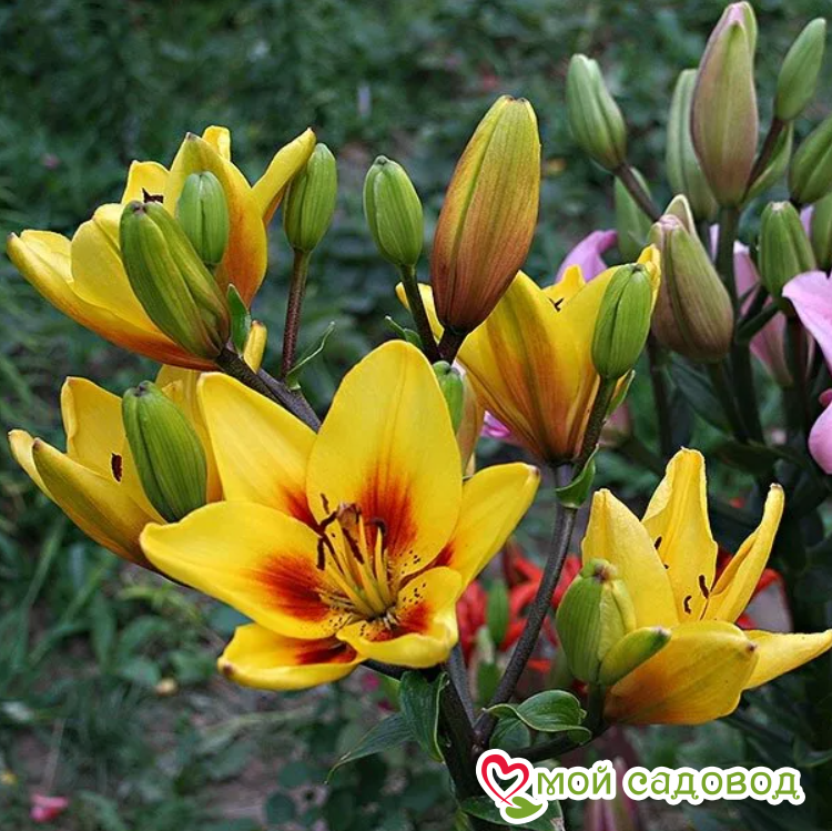 Читать далееОригинальная лилия с ее необычной окраской станет предметом восхищения гостей и соседей. Цветет этот сорт в середине июля. На стебле образуется до 7 цветков направленных вверх. Лепестки среднего размера, желтые, с красно-коричневым основанием и пыльниками, не отгибаются. Очаровательная лилия необычайно хороша в срезке. Высаживать Grand Cru (Гранд Крю) на клумбе лучше среди многолетников с желтыми или синими цветками.
